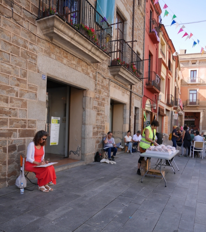 Dibuixar, per nosaltres, és sempre una festa, és clar. Però per mi, fer-ho a Breda, en companyia dels meus companys sketchers, no té preu. I no ens oblidem de la magnífica coca de Can Costa que cada any ens rep per donar-nos força per aguantar el matí, enredats entre pinzells, quaderns i aquarel·les.