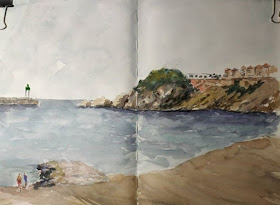 la vista sobre l'horitzó, alguns trien l’espectacle del mar per dibuixar.