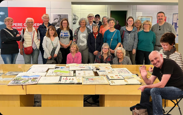 Aquesta vegada hi havia portes obertes, per això ens hi hem trobat molta gent amb mainada, nosaltres ens hem anat repartint pels diferents pisos, fins i tot ens han obert la terrassa, on es veien magnífiques vistes de la Rambla, i amb un dia tan assolellat molts han aprofitat per dibuixar des d'allà.