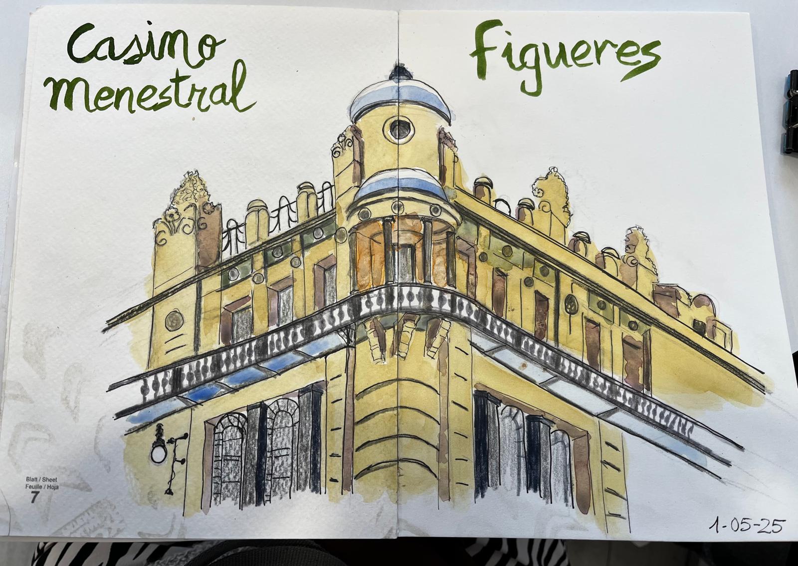 Nosaltres hem retratat l’espai i els carrers, i ens ho hem passat genial dibuixant places, carrers i edificis emblemàtics, com el del mateix casino, obra modernista construïda el 1904 per l’arquitecte Josep Bori i Gensana, o el Museu Dalí, edifici que caracteritza la localitat des del 1974.