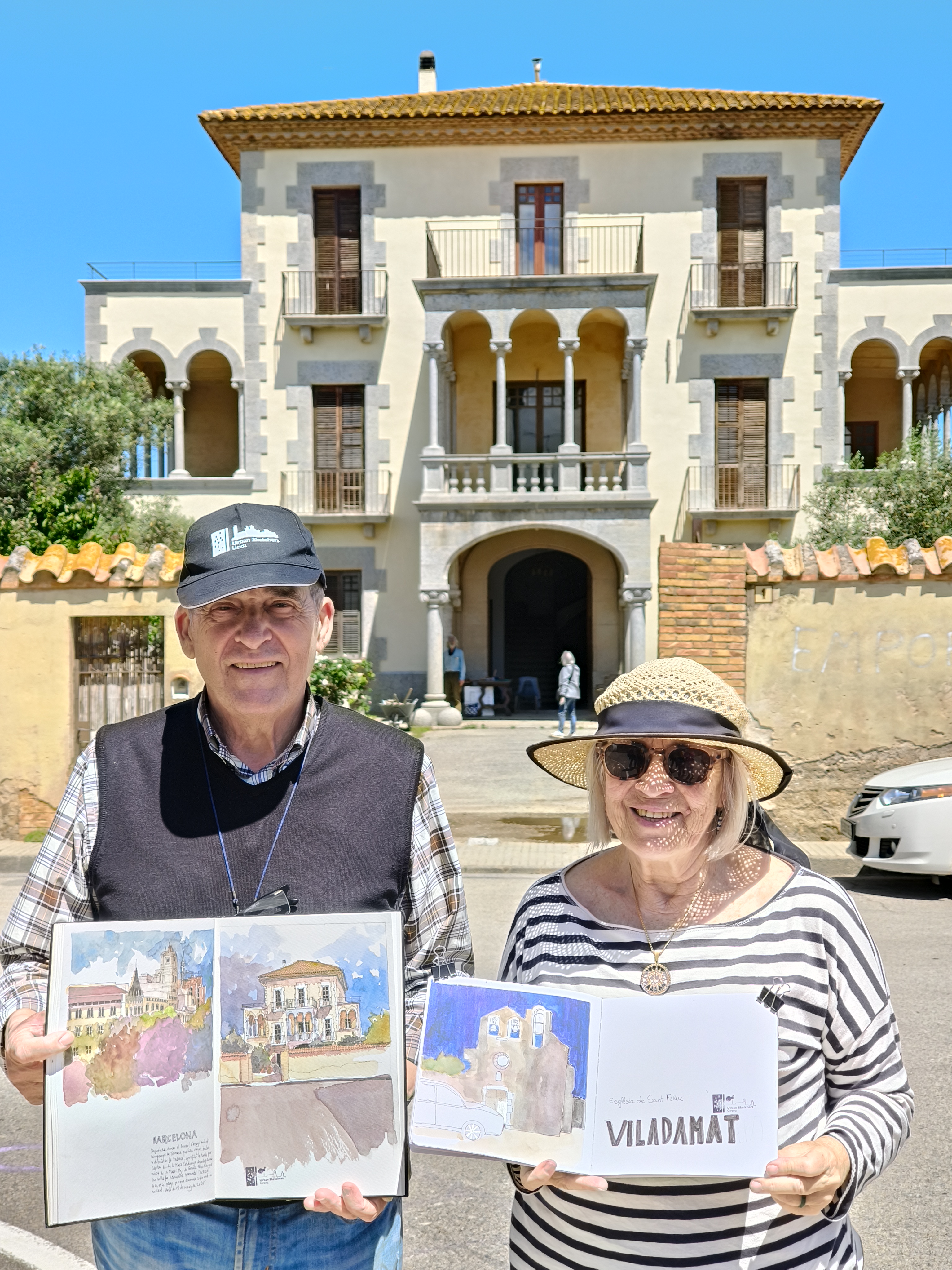 En un matí inesperadament assolellat ens hem trobat a aquest poble de l’Alt Empordà, que fins l’any 1982 era Vilademat i ara és Viladamat. La fe i les ganes d’una trentena d’urban sketchers gironins ha escampat els ruixats i, tot i que molts hem sortit de casa sota la pluja, hem pogut dibuixar sense necessitat de situar-nos sota el paraigua, llevat d’alguna excepció.