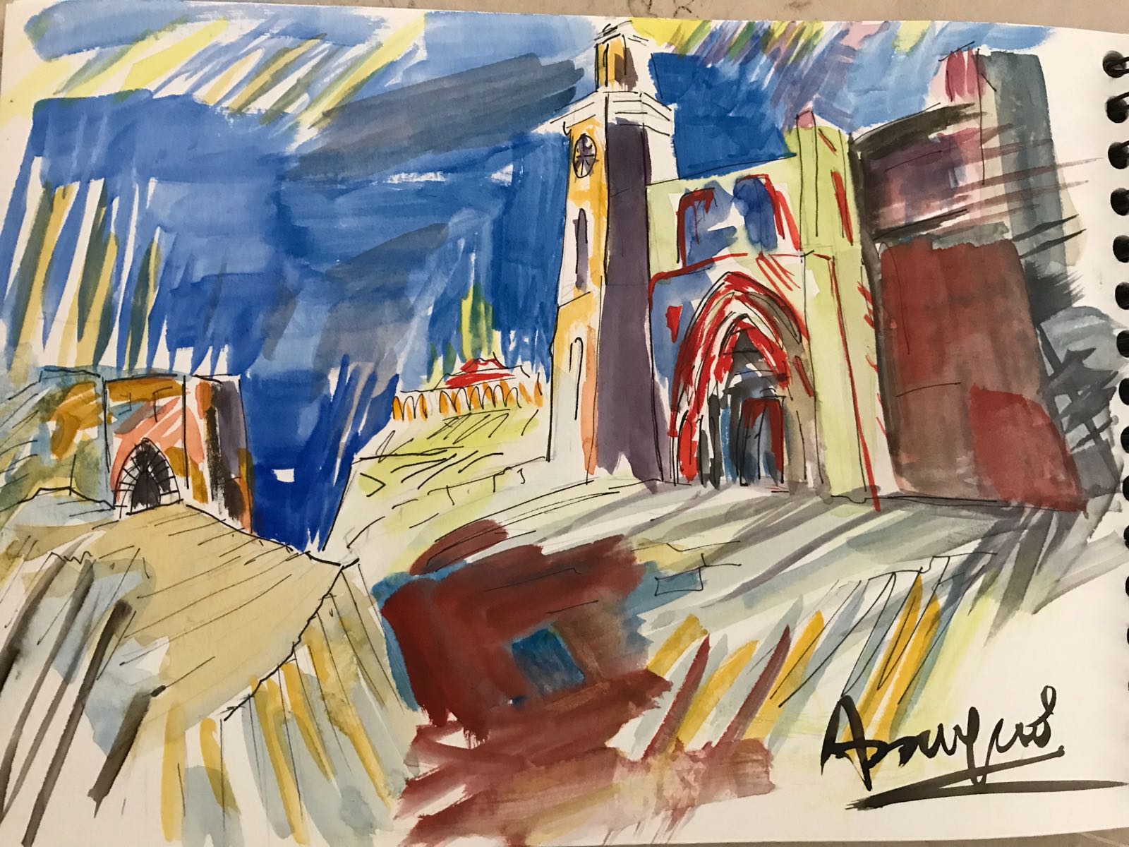 Aquest dimecres, 8 d'agost, l'Ed d'USK Bristol ha estat l'sketcher convidat a les tardes d'estiu, a un dels llocs més emblemàtics i més visitats de Girona, l'escalinata i la porta dels apòstols de la catedral.
