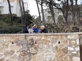 Molts passejants del Camí de Ronda anaven passant. Fins i tot els gossos que duien alguns d'ells, sorpresos, contemplaven l'espectacle d'una trentena de malalts de dibuix representant aquestes costes i aigües que han sigut escenari de tants i tants viatges de la història de la humanitat.