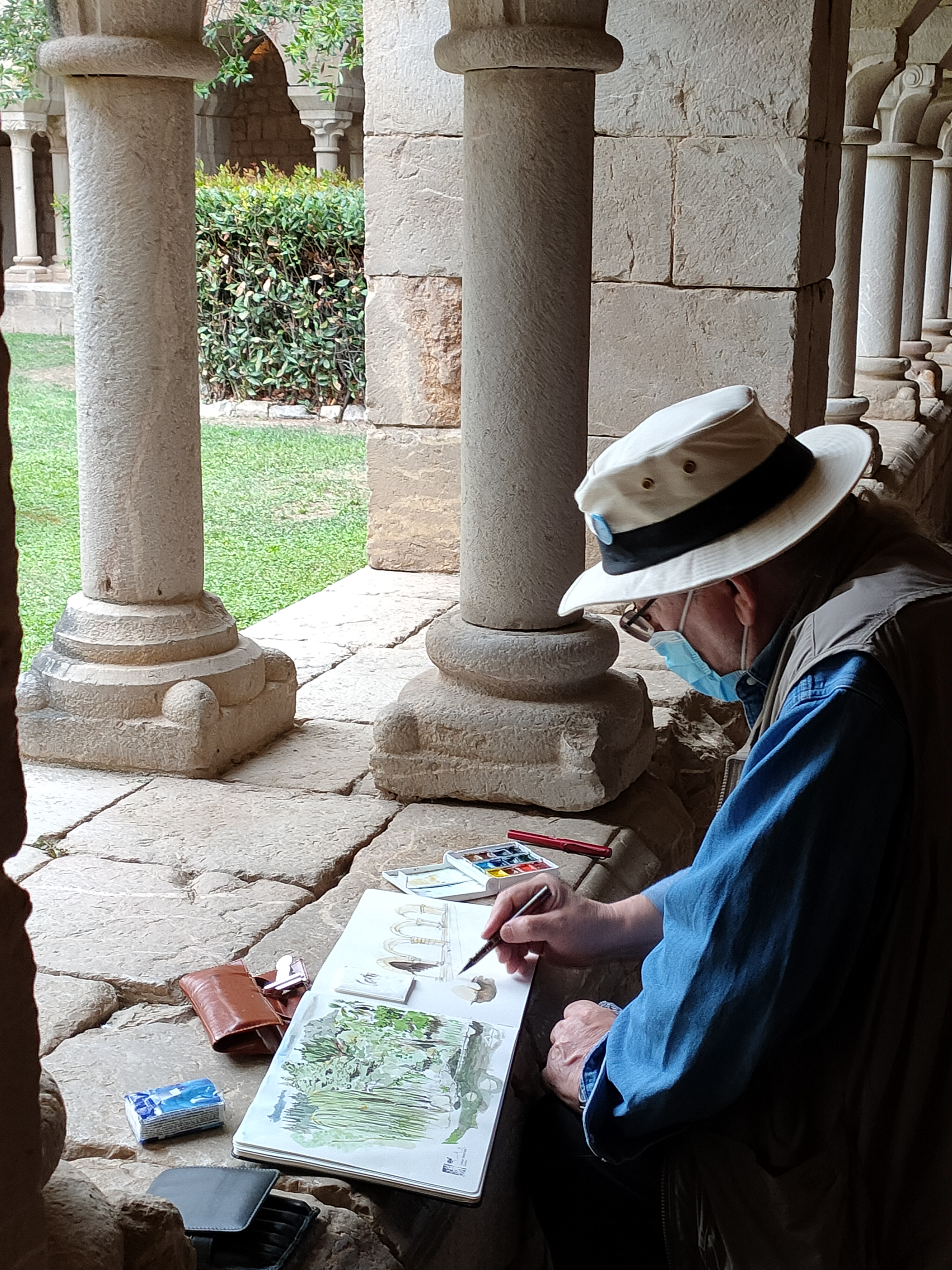 La pluja anunciada i l'oportunitat de poder entrar dins el monestir han fet que s'avancés l'hora de la trobada, ja que a 2/4 de 6 tancaven portes, però tot i la poca estona ha estat un plaer dibuixar en el magnífic claustre, no em passa pel cap un lloc millor, si la pluja hagués fet acte de presència.